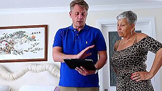 Slim short hair old Mature GILF Foxxxy Darlin get her First Black Monster Cock Sex at Interracial Casting
