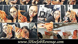 Shoejob workship to my boss wearing my office stiletto pumps , pantyhose