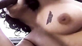Experience the raw passion as a hot and horny housewife unleashes her natural tits and hairy twat...
