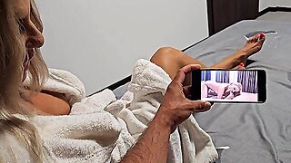 Stepson Help To Cum Stepmom In Share Bed After Her Handjob